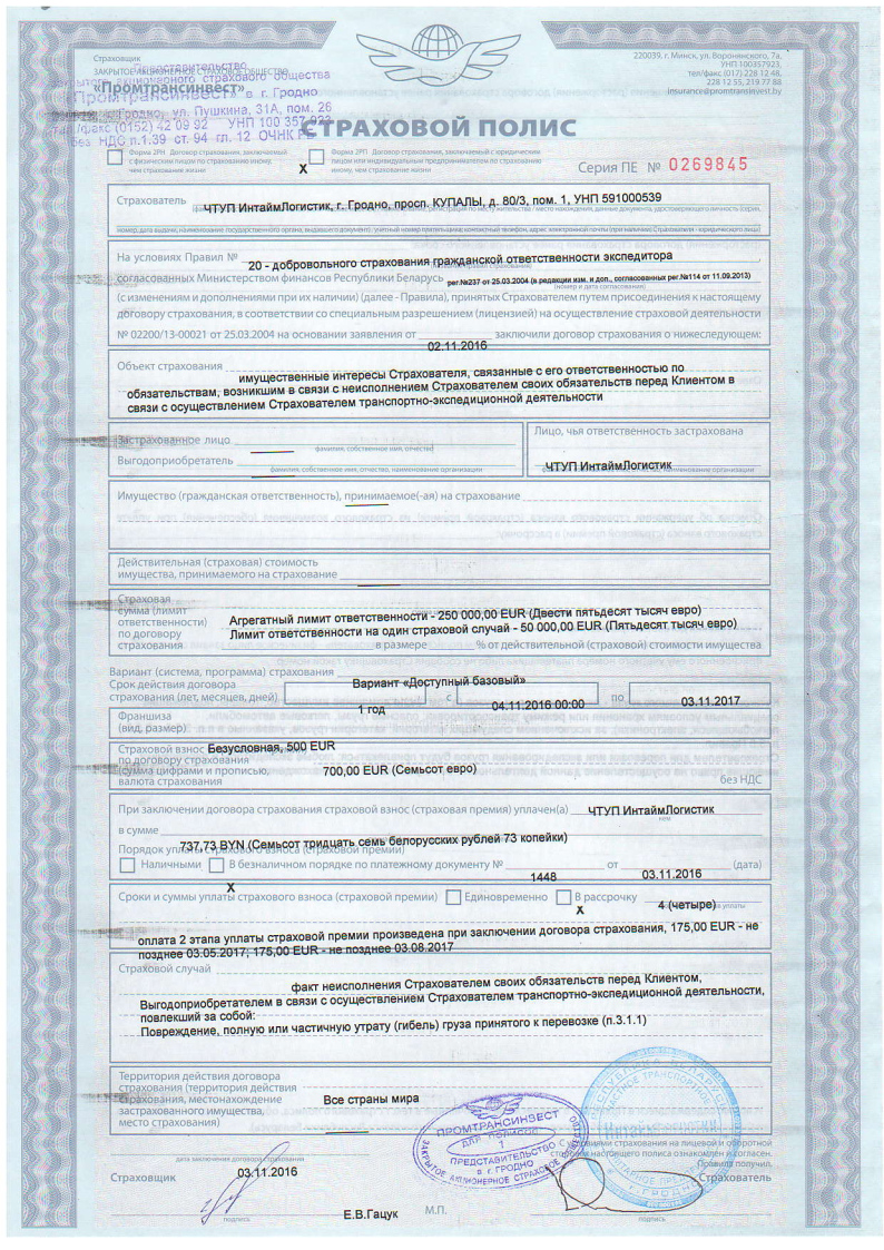 The company "IntaymLogistik" has a qualified staff with experience in conducting customs operations in Germany, Italy or Poland, as a result the process of customs clearance will be carried out in the shortest possible time and with high quality.